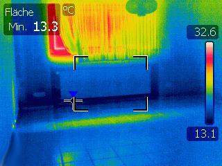 Besonders bedeutsam ist die Thermografie allerdings heute bei der Darstellung der mehr oder weniger bedeutenden Wärmeverluststellen eines beheizten Gebäudes. Hierbei erfolgt die Zustandserfassung durch Momentaufnahmen, mit denen die Oberflächentemperatur bzw. Oberflächenverteilung dargestellt wird. In dem vorliegenden Bericht werden die Thermografieaufnahmen so dargestellt, dass Flächen mit starker Wärmestrahlung rot, solche mit geringer Wärmestrahlung blau abgebildet werden.